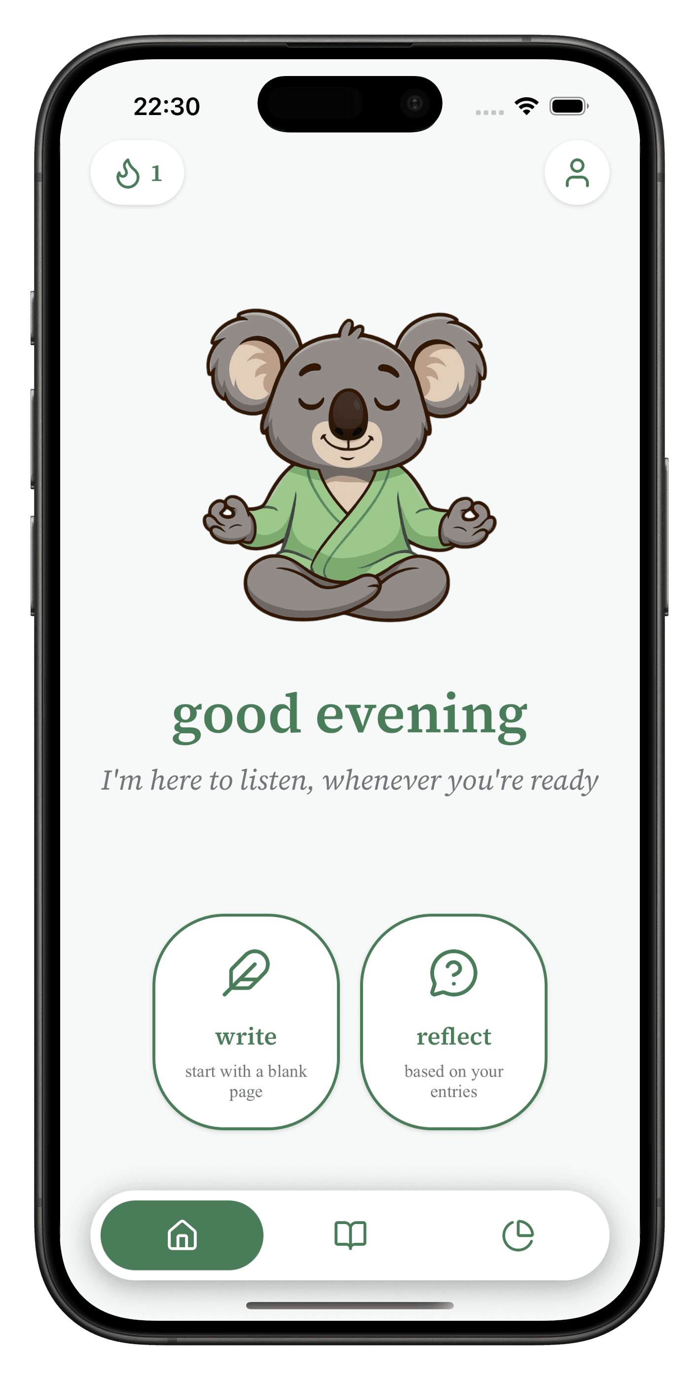 Koyo turns journaling into a gentle conversation. Write freely, then go deeper with thoughtful follow-up questions and insights shaped around what you need most.